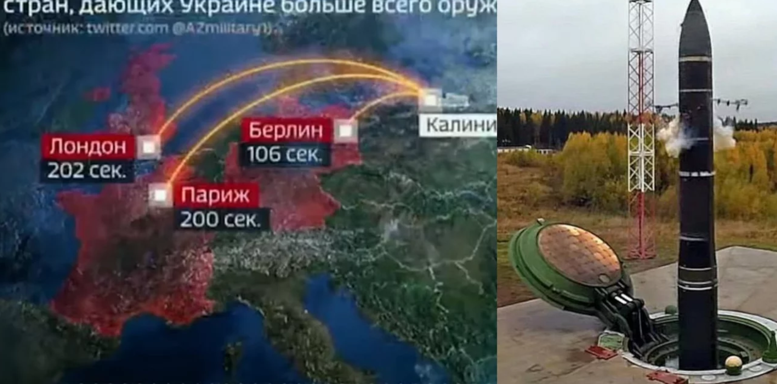 Οι οικοδεσπότες της εκπομπής 60 Minutes του Channel One ανακοίνωσαν πως το Λονδίνο, το Παρίσι και το Βερολίνο θα μπορούσαν να πληγούν μέσα σε 200 δευτερόλεπτα από την εκτόξευση πυρηνικών πυραύλων, την ώρα που οι εντάσεις αυξάνονται εν μέσω του συνεχιζόμενου πολέμου στην Ουκρανία.