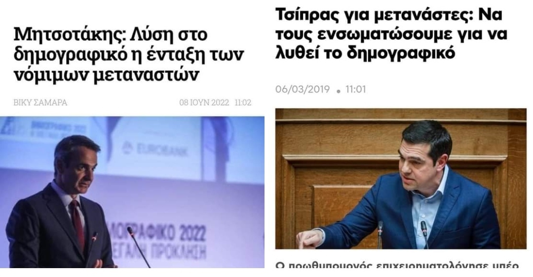 Τελικά οι ιδεοληψίες των άκρο κεντρώων  κοινωνικομαρξιστών ,  που καπηλεύονται τον φιλελευθερισμό και της νεοταξίτικης αριστεράς δεν ξεπερνιούται με τίποτα στα ελληνικά συστημικά κόμματα (ΝΔ,ΣΥΡΙΖΑ, ΠΑΣΟΚ).  Αντί να συζητάμε τρόπους, μέσω κινήτρων  να αυξηθούν οι γεννήσεις Ελλήνων όπως κατάφεραν άλλες χώρες αλλάζουμε το νόημα των λέξεων.  Βαφτίζουμε με εύηχο όνομα  την ισλαμοποίηση της χώρας.  Αγαπητέ πρωθυπουργέ οι παράνομοι που μένουν για κάποια χρόνια δεν νομιμοποιούνται μέσω εισφορών στο ΙΚΑ;