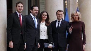 French President Emmanuel Macron (2-R) and his wife Brigitte (R) pose with Lebanese Prime Minister Saad Hariri (2-L), his wife Lara (C) and his son Hussam (L) at the Elysee Palace in Paris, France, 18 November 2017. Hariri, who announced on 04 November his resignation and remained since then in the Saudi capital, has arrived in France on 18 November for his meeting with French President Emmanuel Macron at the Elysee Palace. EPA, YOAN VALAT NOVEMBER 19, 2017