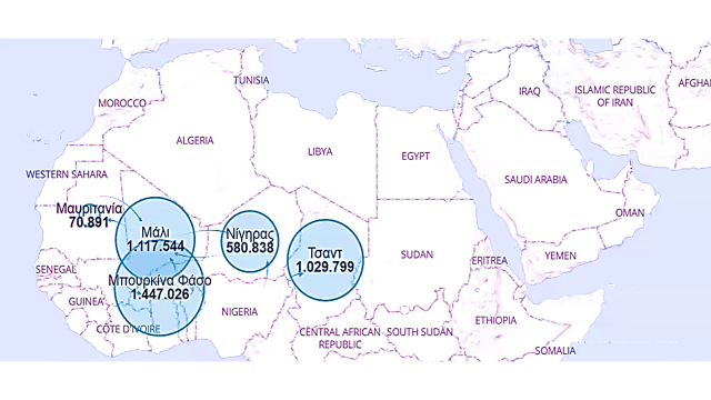 Ας ληφθεί υπόψιν ότι, το Μάλι αριθμεί 20,25 εκατομμύρια πληθυσμού, ο Νίγηρας 21,24 εκατομμύρια πληθυσμού, το Τσάντ 14,63 εκατομμύρια , η Μπορκίνα Φάσο 20,9 εκατομμύρια ψυχές και η Μαυριτανία άλλες 4,65  ψυχές. Δηλαδή όλο το Δυτικό Σαχέλ αριθμεί συνολικά περίπου 81,67 εκατομμύρια πληθυσμό.