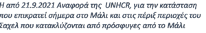 Σύμφωνα με την Ύπατη Αρμοστεία του ΟΗΕ για τους Πρόσφυγες (UNHCR) σε πρόσφατη Αναφορά της στις 21 Σεπτέμβριου 2021, περιγράφεται η κατάσταση που έχει πλέον σήμερα διαμορφωθεί, μετά από εκείνη την είσοδο του 2013 των Γαλλικών στρατευμάτων στο Μάλι, ως ακολούθως  :