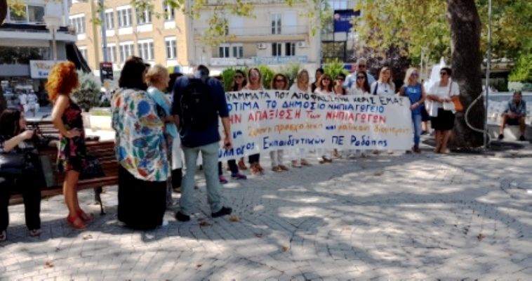 Πράγματι, υπογράφηκαν τον Αύγουστο οι πρώτες συμβάσεις και έγινε προσπάθεια να μπουν οι έξι πρώτες στα νηπιαγωγεία. Ευτυχώς για όλους μας, οι νηπιαγωγοί αντιλήφθηκαν πολύ καλά τι θα σήμαινε μια τέτοια εξέλιξη για τον τόπο μας, αλλά και για τις θέσεις εργασίας τους. Έτσι οι αντιδράσεις τους δεν κάμφθηκαν (η φωτό είναι από την διαδήλωσή τους στην πλατεία της Κομοτηνής στις 11/9/2017).