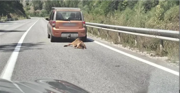 Μια άλλη περίπτωση βάναυσης κακοποίησης ζώων – ένας σκύλος δεμένος σε ένα αυτοκίνητο, σύρθηκε στην άσφαλτο και στη συνέχεια ρίχτηκε σε μια άβυσσο, αναφέρει το Kanal5 των Σκοπίων.