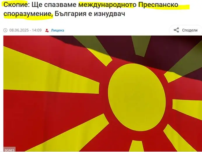 Σύμφωνα με αυτή τη συμφωνία, η πρώην Γιουγκοσλαβική Δημοκρατία της Μακεδονίας μετονομάστηκε σε Δημοκρατία της Βόρειας Μακεδονίας και άλλαξε το σύνταγμά της σύμφωνα με τις απαιτήσεις της Ελλάδας, ανέφερε το BGNES.
