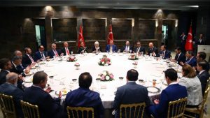 Ο Ταγίπ Ερντογάν με τη σύζυγό του Εμινέ και συνεργάτες του στο δείπνο για το τέλος του Ραμαζανιου. Φωτογραφία ΤΟΥΡΚΙΚΗ ΠΡΟΕΔΡΙΑ JUNE 21, 2017