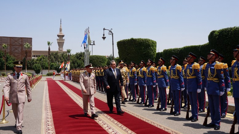 Ο Πάνος Καμμένος επιθεωρεί τιμητικό άγημα μαζί με τον Αιγύπτιο ομόλογό του