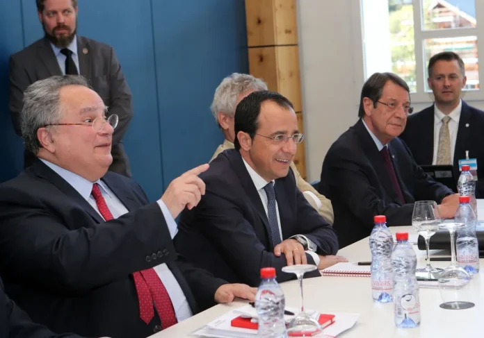 FILE PHOTO: Ο Πρόεδρος της Κυπριακής Δημοκρατίας, Νίκος Αναστασιάδης, ο υπουργός Εξωτερικών Νίκος Κοτζιάς, και ο Νίκος Χριστοδουλίδης, στη Διάσκεψη για την Κύπρο, στο Κραν Μοντανά της Ελβετίας. ΚΥΠΕ, ΚΑΤΙΑ ΧΡΙΣΤΟΔΟΥΛΟΥ