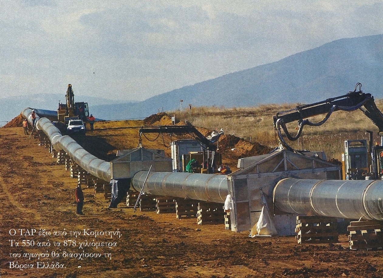 Η πατρίδα μας, όπως γίνεται αντιληπτό, δεν είναι… μακριά από αυτή την ελεγχόμενη …κοσμογονία. Βούληση μόνον απαιτείται από τους κυβερνώντες, αποφασιστικότητα, ομοψυχία και συνέπεια. Η χώρα μας βρίσκεται και θα βρίσκεται εσαεί στο κέντρο των εξελίξεων για ιστορικούς, γεωπολιτικούς και άλλους, τοις πάσι γνωστούς, λόγους∙ σε εμάς εναπόκειται να απλώσουμε το χέρι μας και να αδράξουμε την ευκαιρία∙ αρκεί να μην μας καταβάλει η “δολερή” διχόνοια. Όμως, ας επανέλθουμε στο άρθρο του Κ.Ν.Σ.: «Τελικά από τους ανωτέρω αγωγούς επελέγη ο ελβετικής έμπνευσης αγωγός TAP από την κοινοπραξία εταιρειών που αναπτύσσουν το κοίτασμα Shaz- DenizII στην Κασπία απ’ όπου και θα προέλθει το αέριο. Βέβαια αυτός ο αγωγός δεν θα μπορούσε να λειτουργήσει χωρίς την ύπαρξη ενός πολύ μεγαλύτερου και πλέον κρισιμότερου αγωγού του TANAP (Trans-Anatolian Natural Gas Pipeline Project ) , η κατασκευή του οποίου ξεκίνησε στις 15/3/2015. Ο εν λόγω αγωγός διασχίζει οριζόντια την Τουρκία μεταφέροντας αέριο από τα (όχι και τόσο πλούσια) κοιτάσματα του Αζερμπαϊτζάν στην Κασπία προς την τουρκική ενδοχώρα»…