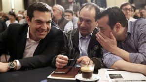 Ο πρωθυπουργός και πρόεδρος του ΣΥΡΙΖΑ Αλέξης Τσίπρας (Α), ο υπουργός Υποδομών και Μεταφορών Χρήστος Σπίρτζης (Κ) και ο υπουργός Ψηφιακής Πολιτικής, Τηλεπικοινωνιών και Ενημέρωσης Νίκος Παππάς (Δ) στη συνεδρίαση της Κεντρικής Επιτροπής του κόμματος σε κεντρικό ξενοδοχείο της Αθήνας. ΑΠΕ-ΜΠΕ, ΣΥΜΕΛΑ ΠΑΝΤΖΑΡΤΖΗ APRIL 9, 2017