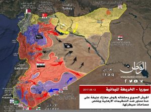 Η πιο σημαντική αλλαγή κατά τη διάρκεια των τελευταίων ημερών ήταν ότι οι συριακές κυβερνητικές δυνάμεις κινήθηκαν (κόκκινες περιοχές και βέλη) στα νότιο-ανατολικά προς τα σύνορα με το Ιράκ. Το αρχικό σχέδιο ήταν να ανακτήσουν την αλ-Τανφ περαιτέρω νοτιο-δυτικά για να εξασφαλιστεί ο σταθμός διέλευσης των συνόρων της εθνικής οδού Δαμασκός-Βαγδάτη εκεί.
