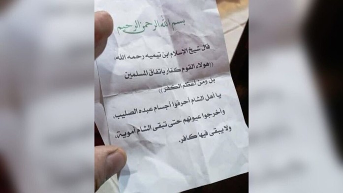 Φυλλάδια που ζητούν την εξόντωση των Χριστιανών αναρτήθηκαν σε ναούς στην πόλη Σαφίτα, ένα προάστιο της Ταρτούς, αυτή την Κυριακή. Υπογράφονταν από την τρομοκρατική ομάδα Άνσαρ Αλσούνα, τον δράστη της επίθεσης στο ναό του Προφήτη Ηλία.