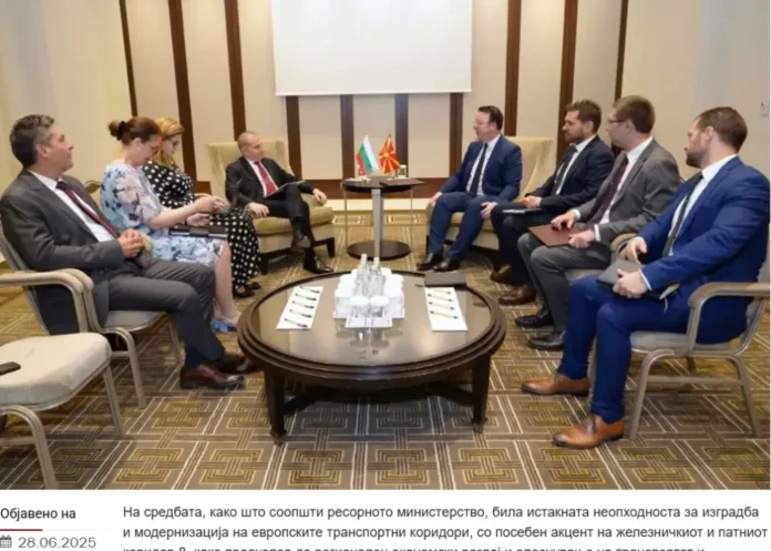 Ο Αντιπρόεδρος της Κυβέρνησης και Υπουργός Μεταφορών της Βόρειας Μακεδονίας, Αλεξάνταρ Νικολόσκι συναντήθηκε σήμερα με τον Αντιπρόεδρο της Κυβέρνησης και Υπουργό Μεταφορών και Επικοινωνιών της Βουλγαρίας, Γκρόζνταν Καρατζόφ, γράφουν τα μέσα ενημέρωσης των Σκοπίων.