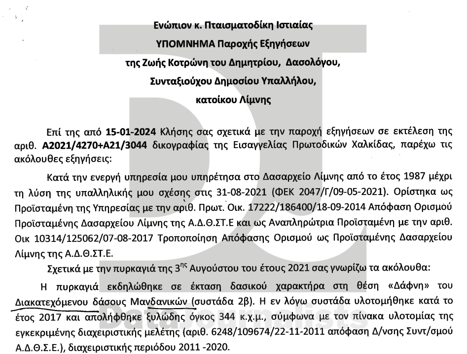 Το ίδιο είχε αναφέρει στις εισαγγελικές αρχές και ο τότε προϊστάμενος του Δασαρχείου Λίμνης.