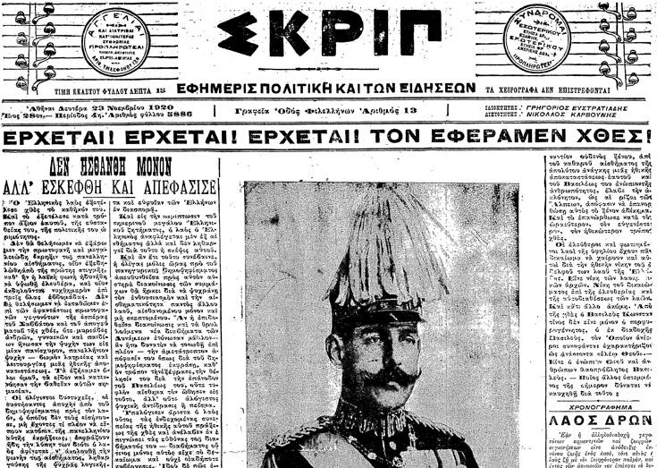 -Τέταρτον, αι Εκλογαί αι οποίαι διεξήχθησαν την 1η Νοεμβρίου 1920, κατά τη διάρκειαν των πολεμικών επιχειρήσεων εις την Μικράν Ασίαν. Την ακατονόητον απόφασιν της διεξαγωγής των, έλαβε αυτοπροσώπως ο Ελευθέριος Βενιζέλος, κατόπιν συνεχών αιτημάτων της αντιπολιτεύσεως και αφού είχεν ολοκληρωθεί η διαδικασία υπογραφής της συνθήκης των Σεβρών. Αποτελεί συνήθη διεθνή πρακτικήν να μη διεξάγονται εκλογαί μεσούσης της πολεμικής περιόδου εις την χώραν. Εις τας εκλογάς αυτάς, λόγω των εντόνων πολιτικών παθών, ο Βενιζέλος δεν εξελέγη ούτε βουλευτής! Αι εκλογαί κατά την κρίσιν μου, έκριναν κατά μέγα μέρος την τύχην της Μικράς Ασίας! Παρά την μεγάλην ευφορίαν των Φιλελεύθερων από την ήδη υπογραφείσαν Συνθήκην των Σεβρών, διά της οποίας η Ελλάς εγένετο χώρα των δύο ηπείρων και των πέντε θαλασσών, η  αντιβενιζελική παράταξη κατήγαγε σαρωτικήν νίκην εις τας εκλογάς, με κύριο σύνθημα των ψηφοφόρων της αντιπολιτεύσεως: “Δεν τα θέλομε”!