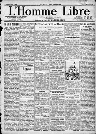 Ο Γάλλος, τότε πρωθυπουργός , Κλεμανσό, έγραφε στην παρισινή εφημερίδα «L’ Homme Libre» («Ελεύθερος Άνθρωπος»), τα εξής συγκλονιστικά: