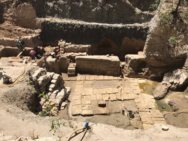 Το μεγάλο αυτό δημόσιο κτίριο Πτολεμαϊκής εποχής όπου ανακαλύφθηκε και η λαξευτή σήραγγα, εντοπίστηκε το 2015, σε βάθος 10 μέτρων, και παρά τις μεγάλες τεχνικές δυσκολίες (υδροφόρος ορίζοντας, τόνοι επιχώσεων, κλπ…), η ανασκαφή συνεχίζεται με εξαιρετικά ευρήματα.
