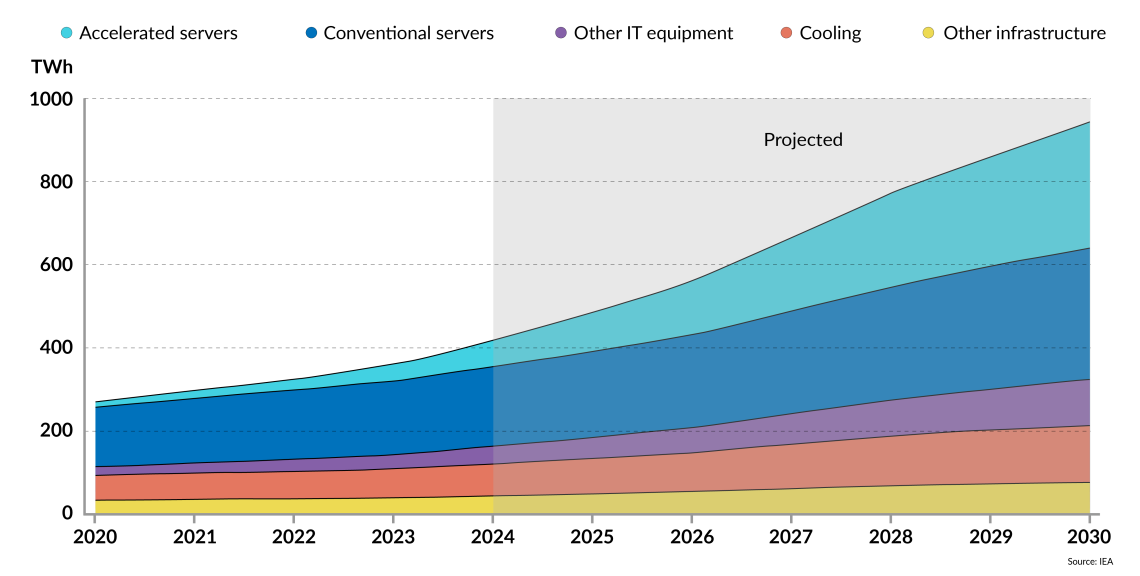 Η εκρηκτική ανάπτυξη της βιομηχανίας τεχνητής νοημοσύνης, μια ακμή που εξακολουθεί να βρίσκεται σε πολύ πρώιμο στάδιο, έχει ήδη προκαλέσει εκρήξεις στη ζήτηση ηλεκτρικής ενέργειας, οι οποίες αναμένεται να ενταθούν στο εγγύς μέλλον. Οι εκατοντάδες εκατομμύρια άνθρωποι που χρησιμοποιούν τακτικά ΤΝ σήμερα ισοδυναμούν με εκατομμύρια νέα σπίτια που προστίθενται στο ενεργειακό δίκτυο. Αυτός ο αριθμός θα συνεχίσει να αυξάνεται.