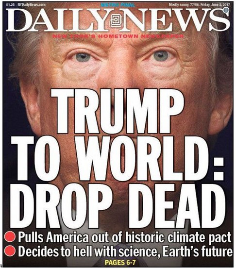 Σύμφωνα με τους New York Daily News, η απόφαση απόσυρσης από την Συμφωνία του Παρισιού για το Κλίμα «αφήνει τις ΗΠΑ να είναι η μόνη μεγάλη χώρα που δεν υπογράφει την Συμφωνία, εκτός από την Συρία και την Νικαράγουα». «Αυτό αποτελεί ένα χτύπημα στις διεθνείς ελπίδες για το Κλίμα», γράφει.