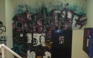 Συνθήματα και γκράφιτι σκεπάζουν τοίχους, σκάλες, θρανία και έδρανα στα περισσότερα πανεπιστημιακά κτίρια της χώρας (παλαιότερη φωτογραφία από τη Νομική Σχολή Αθηνών).