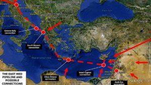 Η ανακοίνωση του Ισραήλ για την ανάγκη κατασκευής του αγωγού East Med, που θα μεταφέρει φυσικό αέριο από το Ισραήλ στην Ευρώπη, μέσω της Κύπρου, της Ελλάδας και της Ιταλίας, θορύβησε την Τουρκία. Ήταν αναμενόμενο… Και ο λόγος είναι απλός: Η κατοχική δύναμη συνειδητοποίησε ότι το Εβραϊκό Κράτος απέκλειε τη χρήση του τουρκικού εδάφους για τη μεταφορά του αερίου της Μεσογείου στην Ευρώπη.