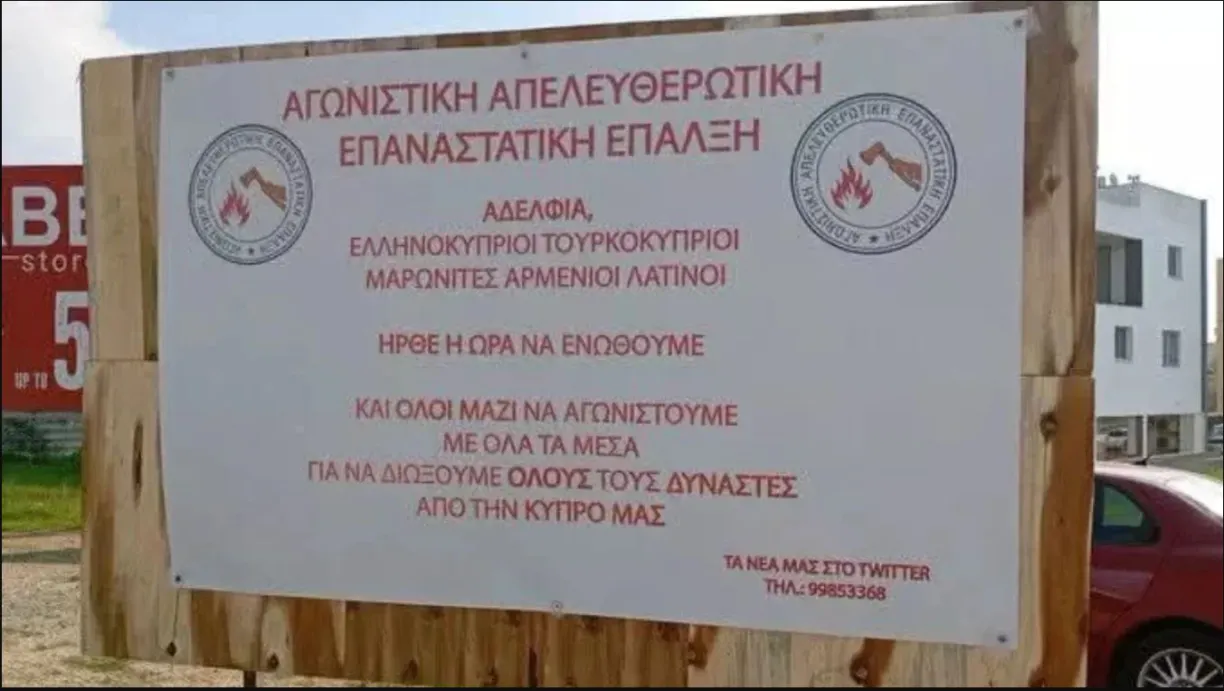 Η νέα τρομοκρατική οργάνωση που ιδρύθηκε στην Νότια (ελεύθερη) Κύπρο για την καταπολέμηση της Τουρκίας ανακοίνωσε ότι «ξεκίνησε ένας μακροχρόνιος απελευθερωτικός αγώνας ενάντια στην τουρκική κατοχή». Η δήλωση της οργάνωσης περιέχει απειλές που στοχεύουν την τουρκική κοινωνία, όπως τονίζει.