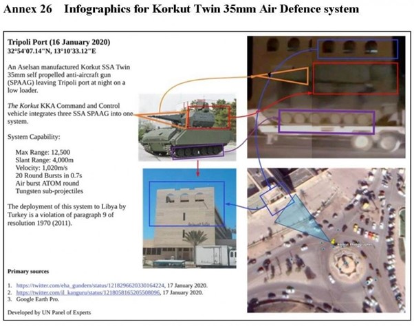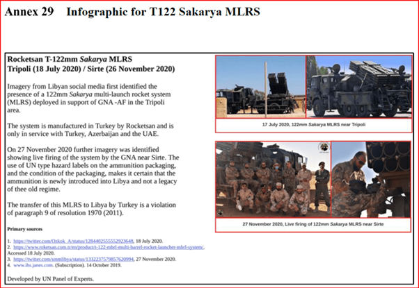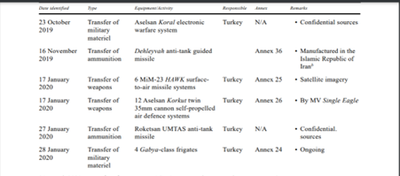 Πάνω: Παράρτημα από τις αναφορές των παρατηρητών του ΟΗΕ που περιγράφει κάποια από τα οπλικά συστήματα που απέστειλε η Τουρκία στη Λιβύη, μετά την υπογραφή των Μνημονίων (MoU) (Πηγή: United Nations)
