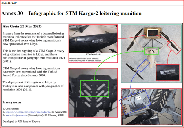 Πάνω: Παράρτημα από τις αναφορές των παρατηρητών του ΟΗΕ που περιγράφει κάποια από τα οπλικά συστήματα που απέστειλε η Τουρκία στη Λιβύη, μετά την υπογραφή των Μνημονίων (MoU) (Πηγή: United Nations)