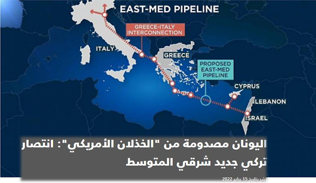 Η αμερικανική κυβέρνηση με επικεφαλής τον Τζο Μπάιντεν ανακοίνωσε την απόσυρση της στήριξης του έργου του αγωγού «EastMed» για τη μεταφορά φυσικού αερίου στην Ευρώπη στην ανατολική Μεσόγειο, μια απόφαση που οι Έλληνες χαρακτήρισαν ως προδοσία και οι Τούρκοι τη θεώρησαν νίκη, γράφει τουρκικό δημοσίευμα στην αραβική γλώσσα.