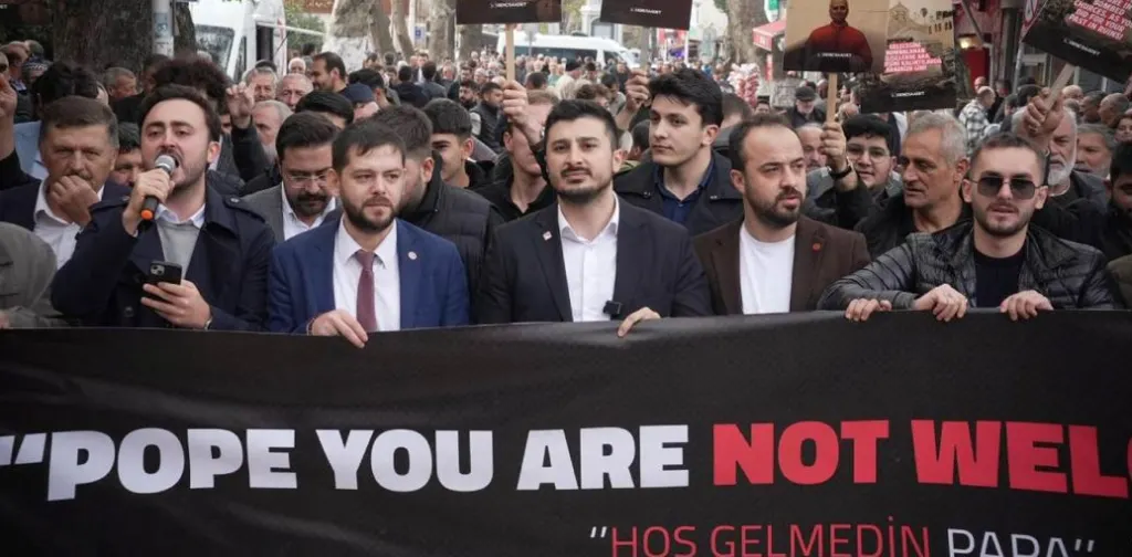 Το ισλαμιστικό τουρκικό Saadet Partisi/Κόμμα Ευτυχίας, διαμαρτυρήθηκε για την επίσκεψη του Επικεφαλής του Βατικανού, Πάπα Λέοντα ΙΔ΄, στην πόλη Νίκαια της Τουρκίας.
