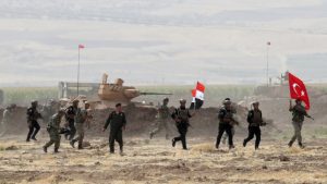 Τμήματα Ιρακινών στρατιωτών με ιρακινές και τουρκικές σημαίες ενώθηκαν με τις τουρκικές δυνάμεις που εκτελούν ασκήσεις κοντά στο συνοριακό πέρασμα του Χαμπούρ, στα σύνορα.