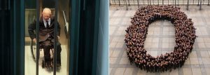 Σχεδόν 400 εργαζόμενοι και συνεργάτες του, ντυμένοι στα μαύρα, σχημάτισαν ένα μεγάλο ανθρώπινο «μηδέν», θέλοντας να τιμήσουν με αυτόν τον τρόπο το επίτευγμα του Βόλφγκανγκ Σόιμπλε να ισοσκελίσει τον ομοσπονδιακό προϋπολογισμό.