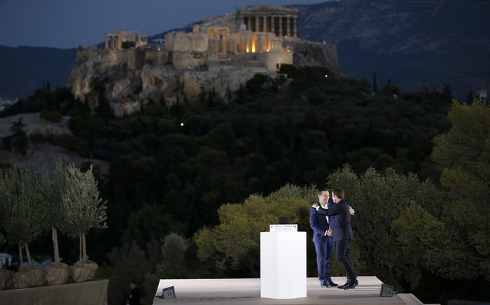 Με κίνδυνο να εμφανιστεί κάπως πομπώδης, γράφει η Liberation, ο Εμανουέλ Μακρόν επέλεξε να αξιοποιήσει ισχυρά σύμβολα. Απευθυνόμενος στην ευρωπαϊκή νεολαία, αποκάλυψε το σχέδιό του για την «επανίδρυση» της Ευρώπης, επιλέγοντας τον λόφο της Πνύκας, εκεί που οι αρχαίοι Ελληνες ψήφισαν τους νόμους στη «χρυσή εποχή» της Αθηναϊκής Δημοκρατίας.