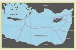 Από το 2011, η Τουρκία κυκλοφορεί τον παρακάτω χάρτη που δείχνει την υφαλοκρηπίδα/ΑΟΖ της Τουρκίας στην Ανατολική Μεσόγειο. Είναι ξεκάθαρα μια εξόφθαλμη παραβίαση των κανόνων του UNCLOS.