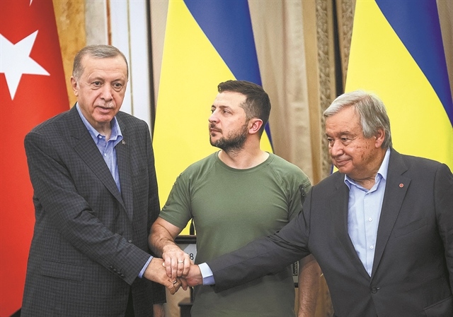 «Πόσο καιρό μπορεί η Τουρκία να παίξει και τις δύο πλευρές στον πόλεμο της Ουκρανίας;» διερωτάτο την περασμένη Πέμπτη η αμερικανική δεξαμενή σκέψης Atlantic Council. Την ίδια ημέρα πραγματοποιήθηκε συνάντηση των προέδρων Ουκρανίας, Τουρκίας και του γενικού γραμματέα του ΟΗΕ (Βολοντίμιρ Ζελένσκι, Ρετζέπ Ταγίπ Ερντογάν και Αντόνιο Γκουτέρες αντιστοίχως) στο Λβιβ για τις εξελίξεις του πολέμου. Ο Ερντογάν διεκδίκησε (εκ νέου) ρόλο διαμεσολαβητή μεταξύ Μόσχας και Κίεβου, ενώ φέρεται να πρότεινε στον Ζελένσκι συνάντηση με τον Βλαντίμιρ Πούτιν. Δύο εβδομάδες νωρίτερα, Πούτιν και Ερντογάν συναντήθηκαν στο Σότσι όπου συμφώνησαν στην αύξηση της συνεργασίας τους.
