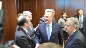 FILE PHOTO: Συνάντηση με τον Γενικό Γραμματέα του ΟΗΕ Αντόνιο Γκουτιέρες είχε ο Τούρκος Υπουργός Εξωτερικών Μεβλούτ Τσαβούσογλου, παρουσία του κ. Άιντα στη Νέα Υόρκη. Φωτογραφία ΑΠΟΣΤΟΛΗΣ ΖΟΥΠΑΝΙΩΤΗΣ JUNE 18, 2017