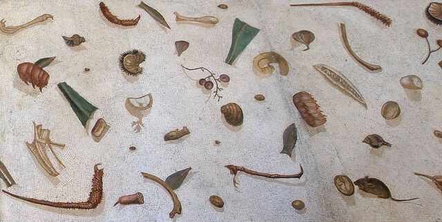 Σ’ ένα διάσημο ψηφιδωτό δάπεδο ρωμαϊκής εποχής, που αντιγράφεται ακόμα μέχρι σήμερα, απεικονίζεται ρεαλιστικά ό,τι πετάχτηκε στο πάτωμα κατά τη διάρκεια ενός συμποσίου, που φυσικά δεν βλέπουμε. Αποφάγια, κόκκαλα, κελύφη από γαρίδες, σκουπίδια. Ο ψηφιδογράφος –και ο χιουμορίστας ιδιοκτήτης της βίλας- θέλησαν πρώτα να ετοιμάσουν ένα λογοπαίγνιο για τους συνδαιτημόνες του επόμενου συμποσίου και ύστερα να μας κλείσουν το μάτι: φάετε, πίετε και πετάξτε ό,τι σας περισσεύει στο πάτωμα χωρίς ενοχές! Κανένας δεν θα είναι βέβαιος μέσα στη μέθη του, ότι είναι τα δικά σας σκουπίδια κι όχι τα σχεδόν αληθινά του δαπέδου. Και οι υπηρέτες την άλλη μέρα θα αλαφιάζονται μη και δεν σκούπισαν καλά και ξέμεινε κανένα αποφάι χαμένο ανάμεσα στις παραστάσεις του δαπέδου. Γενική αποχαλίνωση, γενική απελευθέρωση, τρώμε και πετάμε και πετάμε με τέχνη γιατί και διάγουμε έκλυτο βίο και το κάνουμε με ανωτερότητα. Δηλαδή, με ύφος ανωτερότητας, κατάλληλο να πείσει τη βάση του κόμματος.