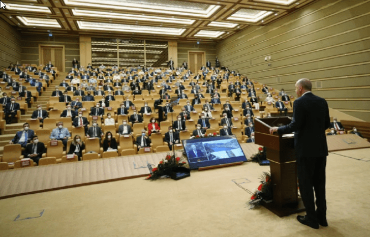 Ο ισλαμιστής πρόεδρος της Τουρκίας, Ταγίπ Ερντογάν ομιλεί σε συγκέντρωση του κόμματος, AKP. Φωτογραφία Τουρκική Προεδρία