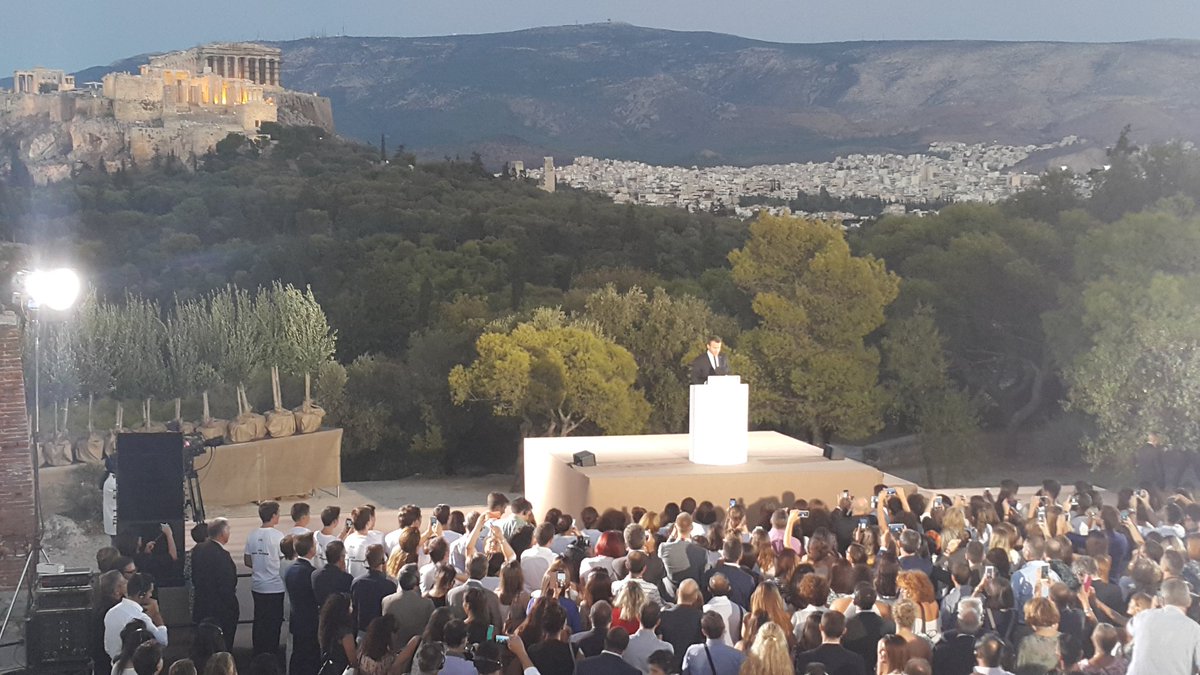 «Με μεγάλη χαρά υποδεχόμαστε τον Εμανουέλ Μακρόν στην Πνύκα όπου η Δημοκρατία έκανε τα πρώτα της βήματα. Εδώ που δημιουργήθηκε το μεγαλύτερο από τα θαύματα του αρχαίου πολιτισμού», τόνισε νωρίτερα ο Αλέξης Τσίπρας.