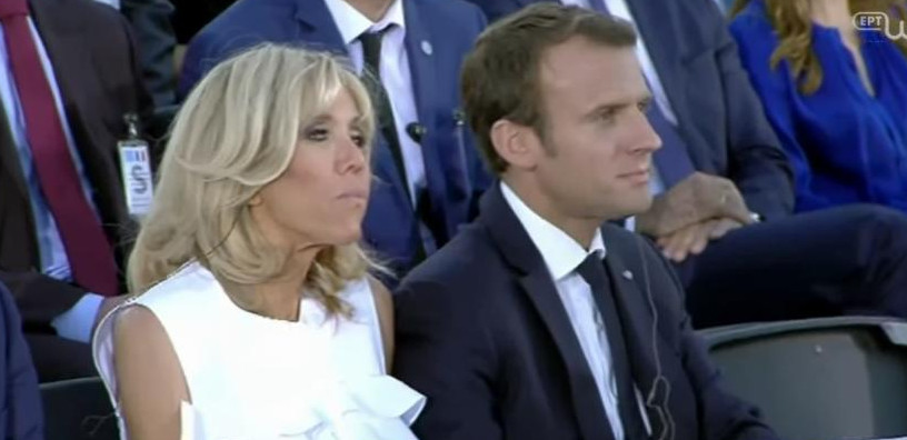 Το ζεύγος Μακρόν παρακολουθεί την ομιλία του Ελληνα πρωθυπουργού: