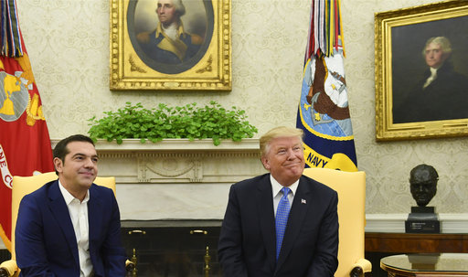 Στις δηλώσεις του μπροστά από τις τηλεοπτικές κάμερες, ο Ντόναλντ Τραμπ ανέφερε ότι είναι τιμή για αυτόν να φιλοξενεί τον Αλέξη Τσίπρα στην Ουάσιγκτον. «Η Ελλάδα έχει κάνει σκληρό δρόμο» είπε ο κ. Τραμπ, και συμπλήρωσε: «Συνεργαζόμαστε σε μία σειρά από τομείς και για την αναβάθμιση των F-16. Θα συζητήσουμε για επιπλέον τρόπους που μπορούμε να βοηθήσουμε την Ελλάδα και η Ελλάδα εμάς».