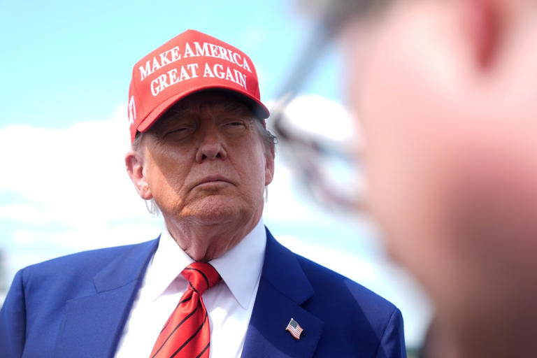 Ο Πρόεδρος Ντόναλντ Τραμπ μιλάει με δημοσιογράφους κατά την άφιξή του στο Δημοτικό Αεροδρόμιο Μόρισταουν στο Μόρισταουν του Νιου Τζέρσεϊ, την Παρασκευή 20 Ιουνίου 2025. AP