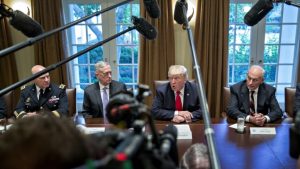 File Photo: US President Donald j. Trump,(C-R) speaks as John Kelly, White House chief of staff, (R), H.R. McMaster, national security advisor, (2-L), and Jim Mattis, U.S. secretary of defense, (L) listen during a briefing with senior military leaders in the Cabinet Room of the White House in Washington, DC, USA. EPA, Andrew Harrer / POOL DECEMBER 13, 2017