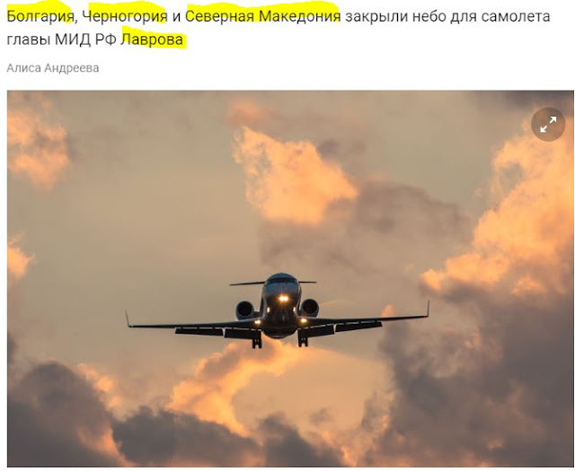Το Μαυροβούνιο, η Βουλγαρία και η Βόρεια Μακεδονία έκλεισαν τον εναέριο χώρο τους στα αεροσκάφη του Ρώσου υπουργού Εξωτερικών Σεργκέι Λαβρόφ , ανέφερε η σερβική εφημερίδα Vecherne Novosti.