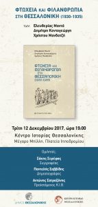 Φτώχεια και φιλανθρωπία στη Θεσσαλονίκη (1930-1935) τιτλοφορείται το βιβλίο των: Ελευθερίας Μαντά, Δημήτρη Κοντογεώργη και Χρήστου Μανδατζή που θα παρουσιαστεί την