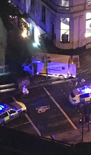 Αυτόπτης μάρτυρας δήλωσε στο BBC ότι ένα λευκό κλειστό φορτηγάκι βγήκε από το οδόστρωμα και χτύπησε πέντε ή έξι πεζούς στη Γέφυρα του Λονδίνου.