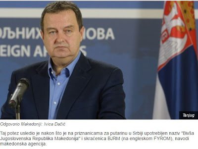 Σε απάντηση του αιτήματος του υπουργείου Εξωτερικών των Σκοπίων για τη χρήση του όρου ‘πΓΔΜ’ από τη Σερβία (σερβικά : Bivša Jugoslovenska Republika Makedonija” και με τα αρχικά BJRM)-, ο υπουργός Εξωτερικών της Σερβίας, Ίβιτσα Ντάτσιτς δήλωσε ότι εάν οι αξιωματούχοι των Σκοπίων θεωρούν προσβλητική την ονομασία BJRM, το ίδιο ισχύει για τη Σερβία όταν χρησιμοποιούν αυτοί τον όρο «Δημοκρατία του Κοσσυφοπεδίου».