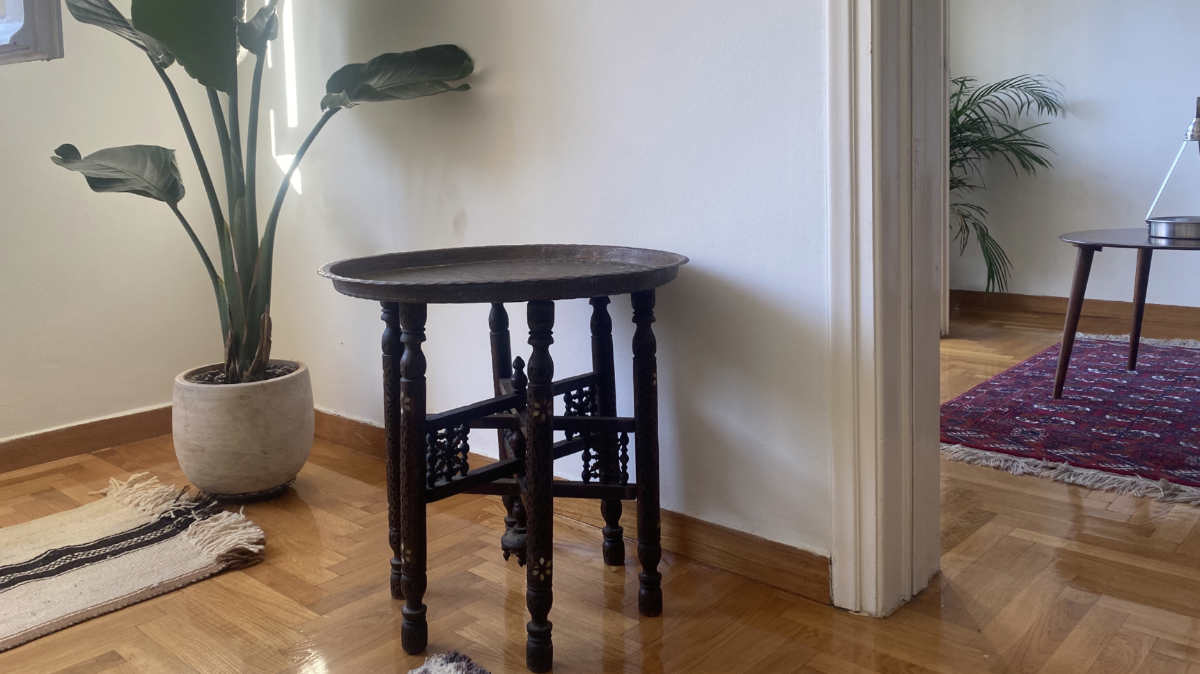 Πριν φτάσω, είχα ψάξει στο Etsy για ένα πτυσσόμενο τραπεζάκι και δίσκο· από εκείνα που βλέπει κανείς σε ασπρόμαυρες φωτογραφίες σαλονιών στην Οθωμανική Αυτοκρατορία.