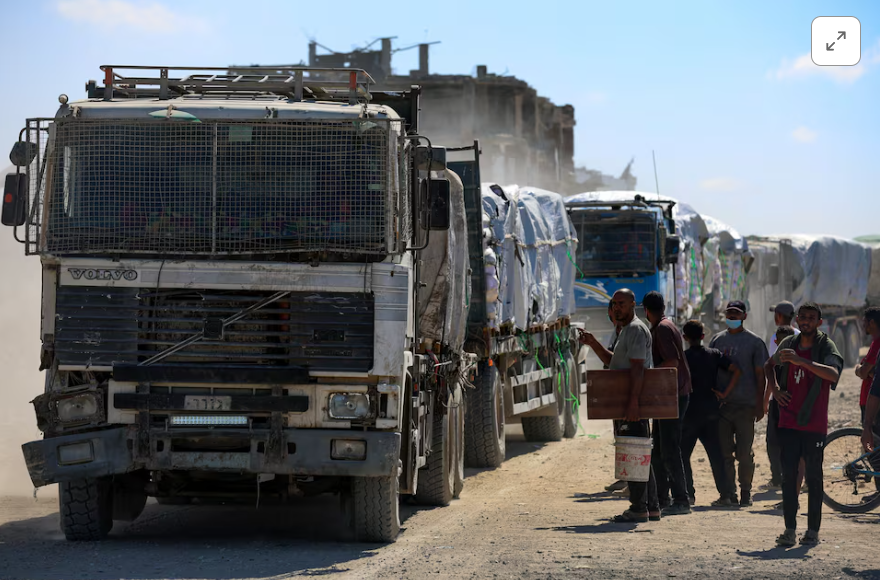 Ωστόσο, δεν ήταν σαφές αν εκείνη η φάλαγγα θα ολοκλήρωνε τη διέλευσή της στη Γάζα ως μέρος των 600 φορτηγών που επρόκειτο να εισέλθουν στον θύλακα την Τετάρτη — τον πλήρη ημερήσιο αριθμό που απαιτείται βάσει του σχεδίου εκεχειρίας. Φορτηγά βοήθειας εισήλθαν στη Γάζα και από άλλα περάσματα.