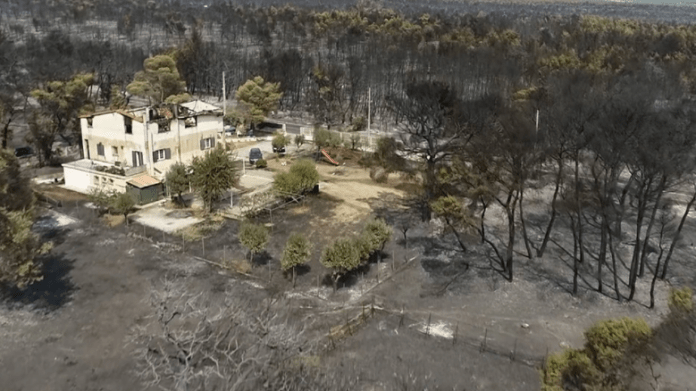 Τεράστια θλίψη προκαλούν οι εικόνες που τραβήχτηκαν από drone πάνω από τη Βαρυμπόμπη την οποία έπληξε η καταστροφική φωτιά την Τρίτη