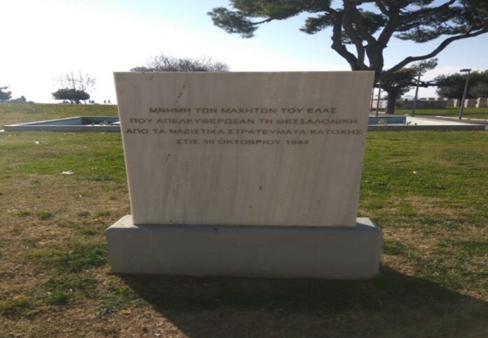 Με την συγκεκριμένη ονομασία τιμάται η μνήμη της επετείου της απελευθέρωσης της Θεσσαλονίκης από τα ΓΕΡΜΑΝΙΚΆ ΣΤΡΑΤΕΥΜΑΤΑ ΚΑΤΟΧΗΣ στις 30 ΟΚΤΩΒΡΙΟΥ 1944. Και συνεχίζει με την απόφαση της Αντιδημάρχου Οικονομικών ΑΔΑ:70ΟΙΩΡ-ΒΔΑ. Με θέμα «Έγκριση απ΄ ευθείας ανάθεσης της προμήθειας ειδικής μαρμάρινης επετειακής πλακέτας εις μνήμη της απελευθέρωσης της Πόλης στις 30.10.1944 από τον ΕΛΑΣ» ( βλέπετε έκθεση ΕΑΔ σελίς7) εγκρίθηκε με βάση το άρθρο 58 ,Ν 3852/10 και την αριθ. 878/2015 Απόφαση του Δημάρχου Μπουτάρη περί μεταβιβάσεως αρμοδιοτήτων στην Αντιδήμαρχο Οικονομικών η «..ανάθεση της προμήθειας ειδικής επετειακής μαρμάρινης πλάκας ( φιλοτέχνηση κατασκευή και τοποθέτηση πλάκας από μάρμαρο Διονύσου με ειδική χάραξη κειμένου, για το επετειακό γεγονός της απελευθέρωσης της Πόλης στις 30/10/1944 η οποία θα τοποθετηθεί στην παραλία της Θεσσαλονίκης μπροστά στο Βασικό θέατρο, στην εταιρεία ΜΑΡΚΟΣ Ι. ΜΠΟΛΑΡΗΣ &ΣΙΑ Ο.Ε.ΕΜΠΟΡΙΑ &ΕΠΕΞΕΡΓΑΣΙΑ ΜΑΡΜΑΡΟΥ 7Ο ΧΛΜ.ΘΕΣΣΑΛΟΝΙΚΗΣ-ΘΕΡΜΗΣ Τ.Κ 57001 έναντι αμοιβής 806,00€ συμπεριλαμβανομένου του ΦΠΑ και όλων των νόμιμων κρατήσεων» . Πρωτόγνωρη εμπειρία, ως Πολιτικός Μηχανικός, Ανάθεση έργου σε εταιρεία Μαρμάρων χωρίς εγκεκριμένο σχέδιο της Δνσης Αστικού Σχεδιασμού και Αρχιτεκτονικών Μελετών του Δήμου Θεσσαλονίκης και χωρίς κείμενο επιγραφής στην Πλάκα. Χωρίς επιβλέποντα του έργου; κ.λ.π. Η αναφερόμενη Διεύθυνση σύμφωνα με το (στ) σχετικό « ….δεν έχει λάβει μέχρι σήμερα κανένα από τα σχετικά έγγραφα και ουδέποτε ενημερώθηκε ή προχώρησε στην αδειοδότηση και χωροθέτηση της εν λόγω αναθηματικής πλάκας….».